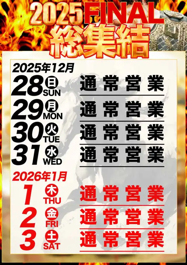 1位 12月27日(土) 2位 12月13日(土) 3位 12月22日(月)