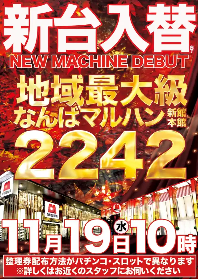 【なんば本館】11月18日(火)新台入替(予定)10時開店!
