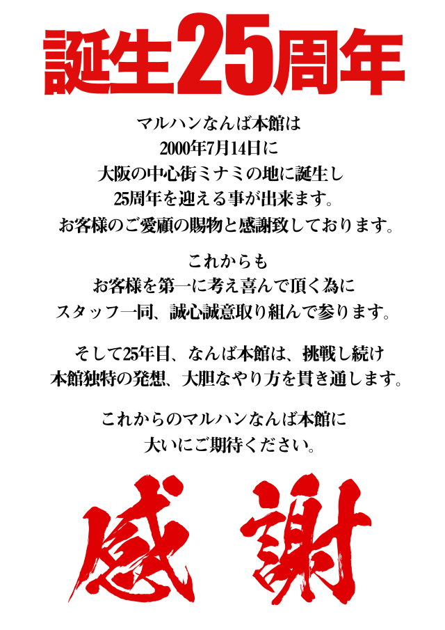 ★なんば本館生誕25周年★