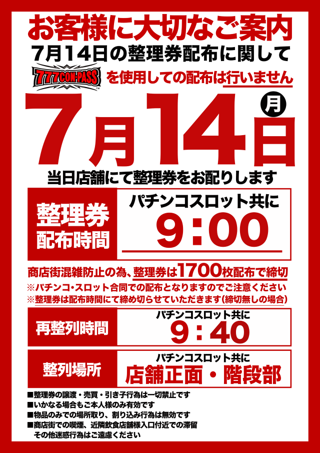 7月14日は抽選方式が変更となります!
