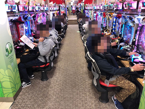 午前は、「CR大海物語4」やジャグラーシリーズなど定番タイトルが人気を集めていた。