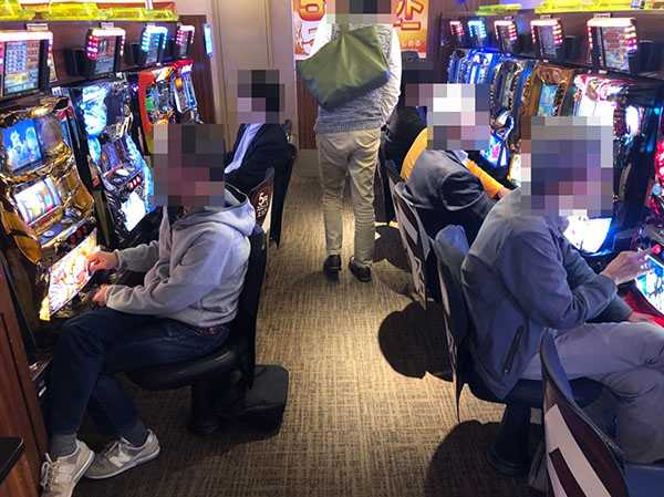5円パチスロも同様に、多くのプレイヤーが楽しんでおり、プレイヤーは思い思いの機種を選び、真剣な表情でレバーを叩いていた。