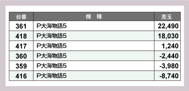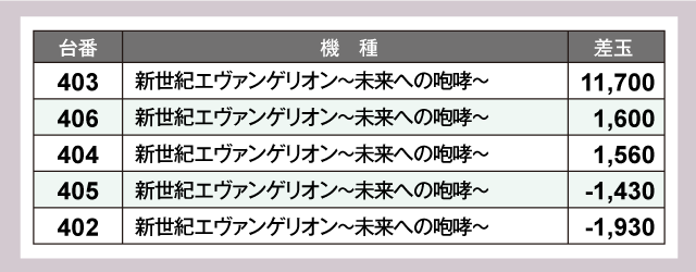 また、その他にも『P大海物語5』から+22,490発に+18,030発、『新世紀エヴァンゲリオン〜未来への咆哮〜』から+11,700発が飛び出すなど、人気機種を中心に多数の好調台を確認。広範囲に渡ってチャンスが潜んでいたのは間違いないだろう。