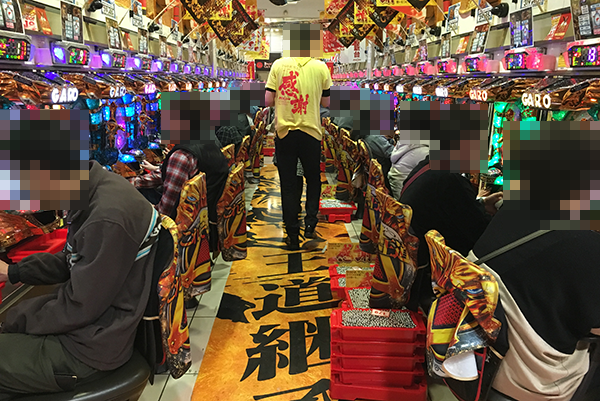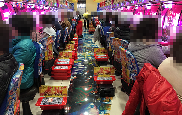 16時を過ぎた頃の4円パチンコの様子をうかがうと、「CR牙狼魔戒ノ花〜BEAST OF GOLD ver.〜」や「ぱちんこCR真・北斗無双」など、多くの機種が盛況。機種の魅力を堪能できているようなプレイヤーの満足気な表情も印象的であった。