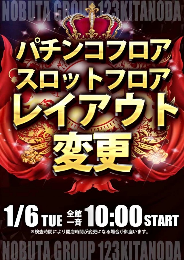 1月6日(火)新台入替!全館10時開幕!北斗の拳転生2導入!