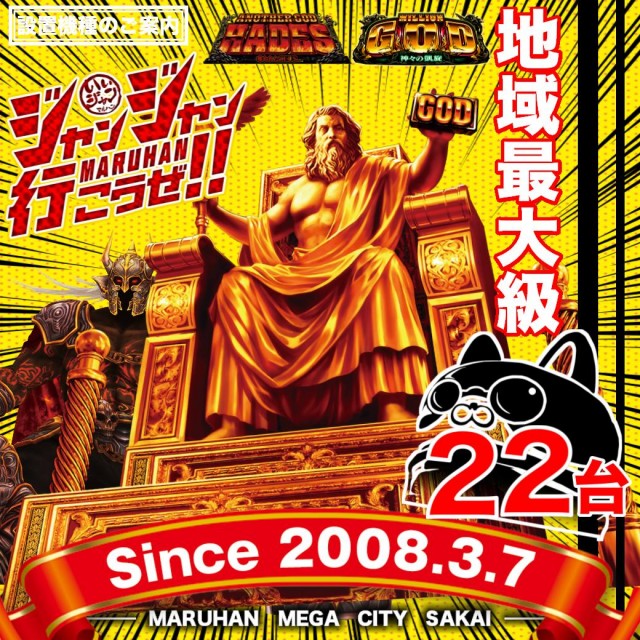 マルハンメガシティ堺は、2008年3月7日にグランドオープン致しました。スタッフ一同、「お客様の満足」創造に努めております。私たちは常にお客様の視点で発想しお客様の「快適空間」を追求して行きます。