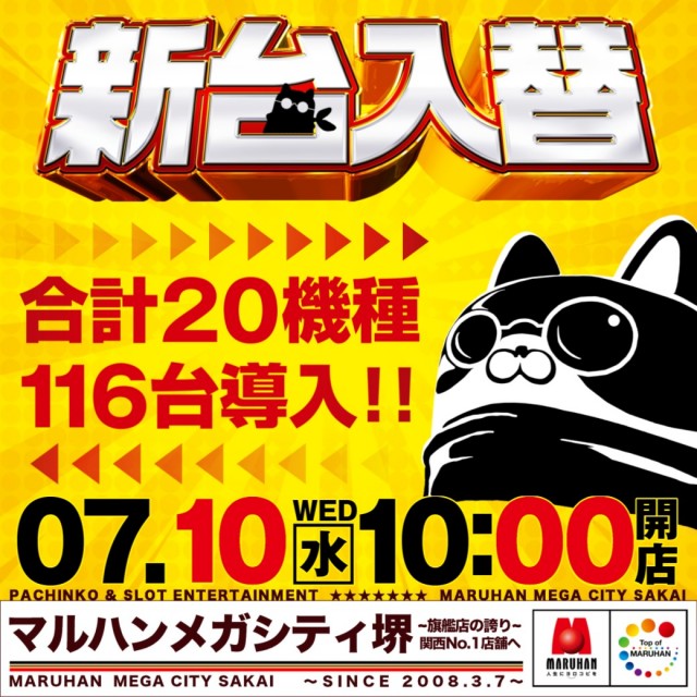 7/10 大型新台入替20機種116台!牙狼40台導入!!