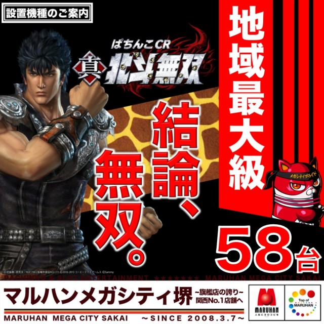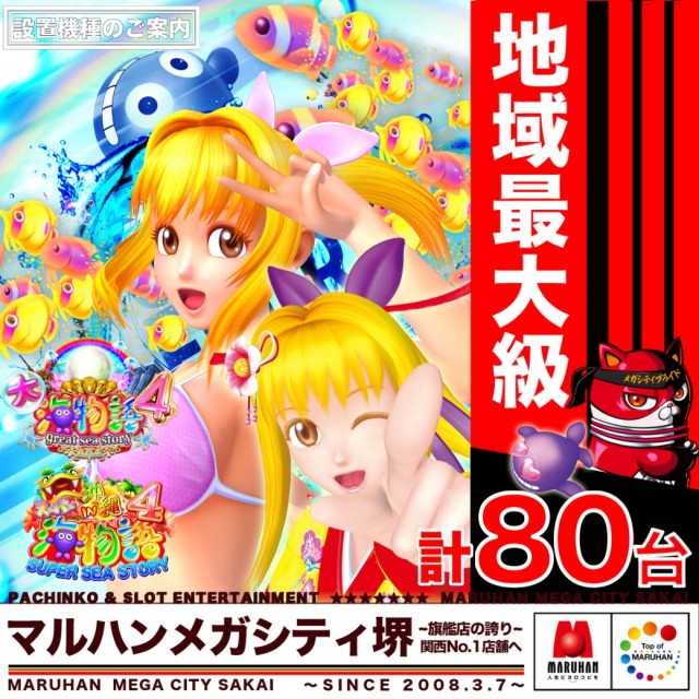 マルハンメガシティ堺は、2008年3月7日にグランドオープン致しました。スタッフ一同、「お客様の満足」創造に努めております。私たちは常にお客様の視点で発想しお客様の「快適空間」を追求して行きます。