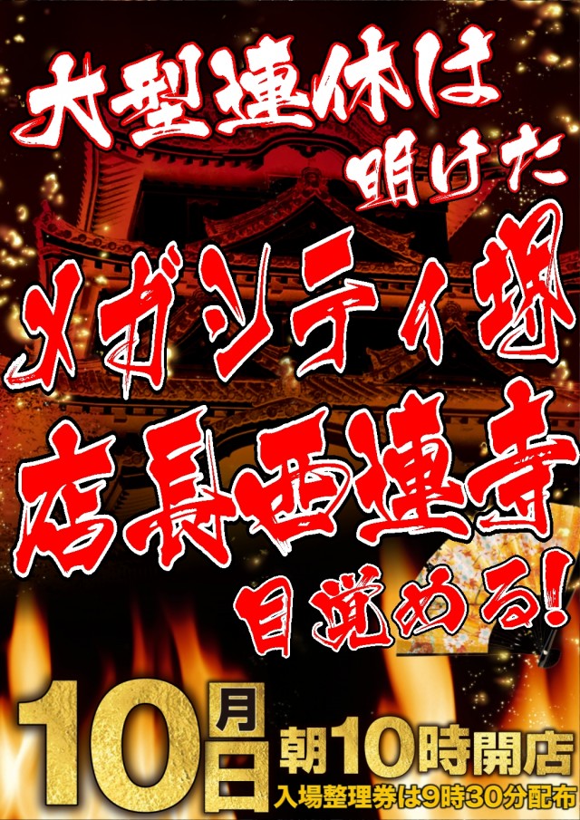 9時30分迄にお並びいただいたお客様に入場抽選にて順番券を配布致します。※新台入替予定日など時間が変動する場合がございます。 |