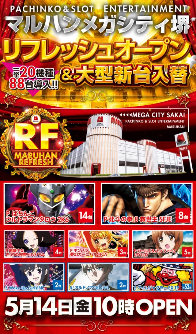 5月14日リフレッシュオープン&大型新台入替&店長ブログ更新