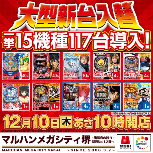 10日≪大型新台入替≫話題の最新台一挙15機種117台導入!