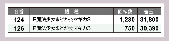一方パチンコも負けていない。『新世紀エヴァンゲリオン〜未来への咆哮〜』では+42,000発弱の台を輩出、『P魔法少女まどか☆マギカ3』には+30,000発を上回った2台をカウントできた。