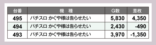 人気スマスロの『パチスロ かぐや様は告らせたい』からは、+4,350枚の差枚を記録する台も登場するなど注目を集めていた。