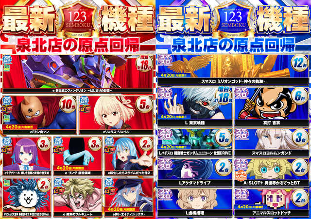 4月10日【金】新台入替完了!123TV賞品入荷!