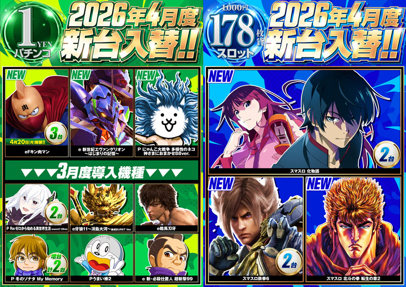 4月9日【木】新台入替完了!123TV賞品入荷!
