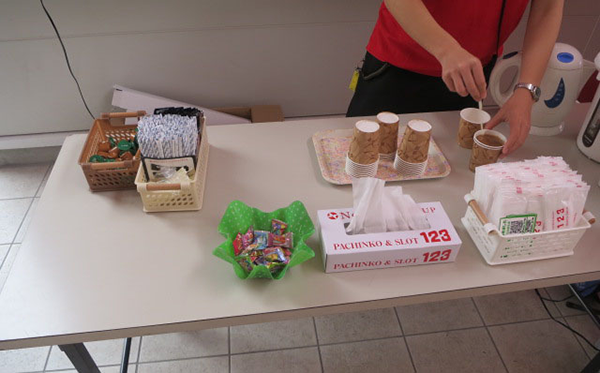 朝の並びの際にはプレイヤーにコーヒーやお茶などを配るスタッフの姿も発見。開店をするまでの時間も、気持ち良く過ごしてもらいたいといった思いが感じられた。