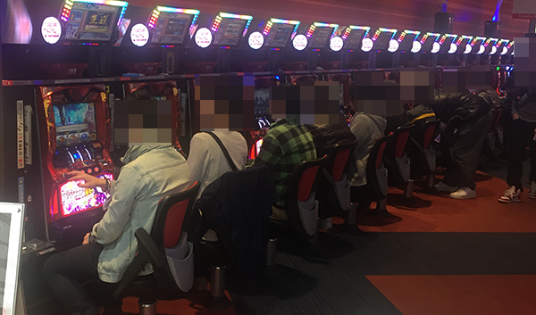 朝は20円パチスロが人気となっており、「バジリスク~甲賀忍法帖~絆」や「パチスロ北斗の拳 強敵」がほとんど満席。