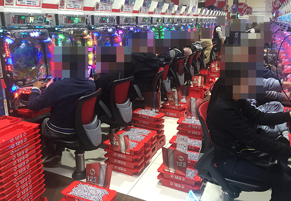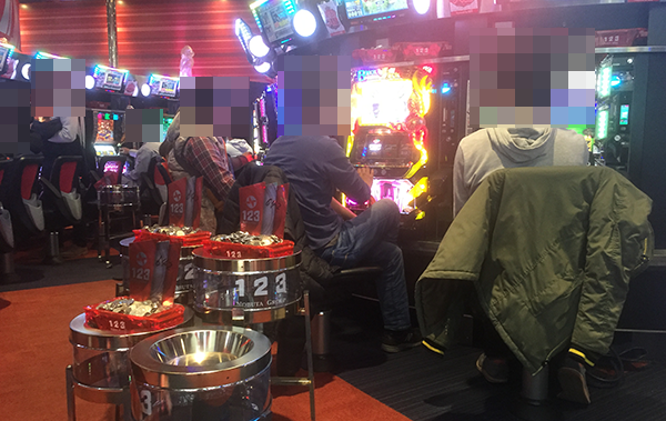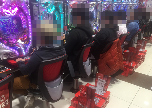4円パチンコも新台にプレイヤーの姿が多く、「CRフィーバーアクエリオンEVOL」に空き台は見当たらない。