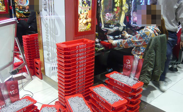 朝イチと変わらずに1円パチンコの支持も厚く、ホール内のどのシマでも笑顔を確認している。