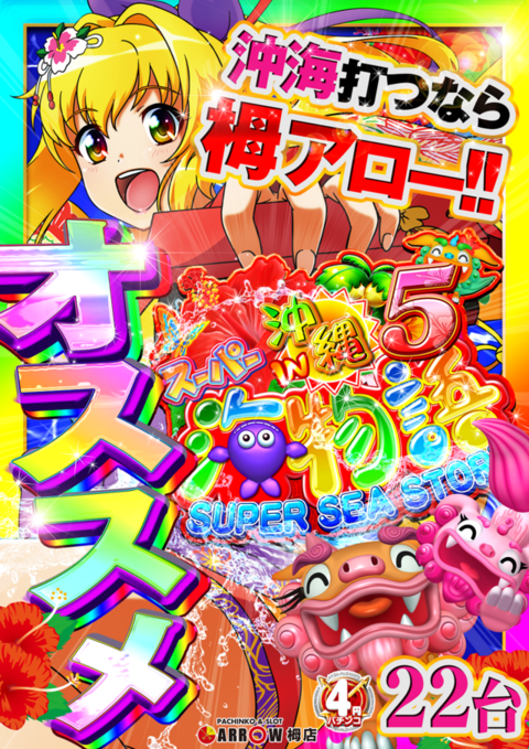10月7日(月)Pスーパー海物語 IN 沖縄5 22台設置!