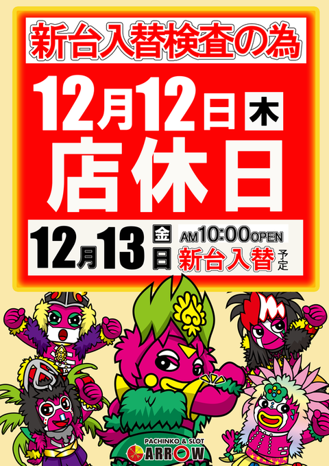 10月3日(木)新台入替準備の為、店休日
