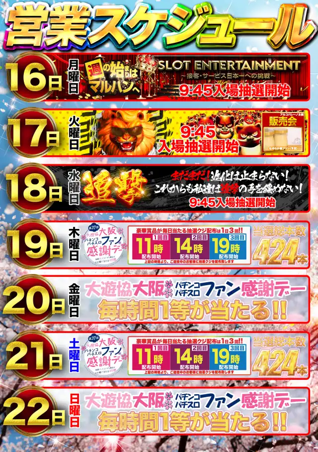 4月4日(金)新台入替初日!役職者ブログ更新!