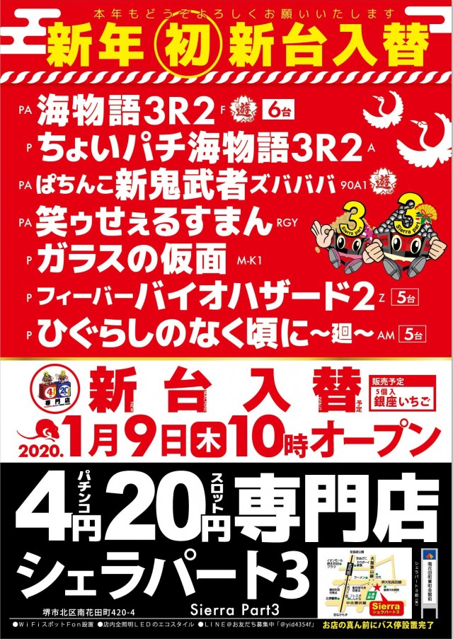 明日1月11日10時オープン!新年初の新台は入替済み!