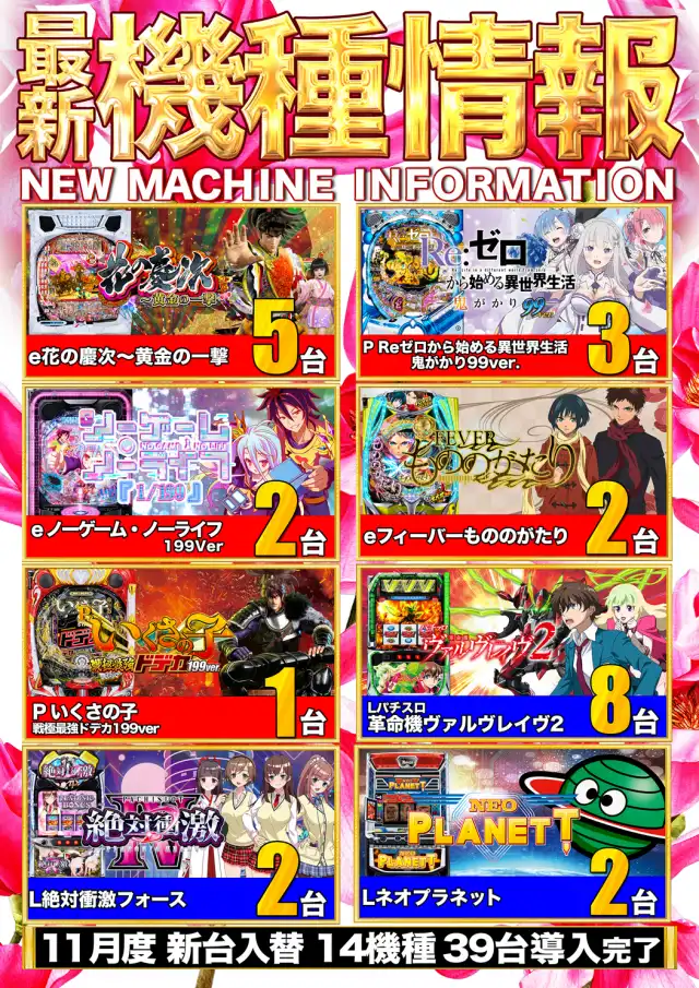 新台入替前日は検査の為、お休みを頂く場合がございます。 |