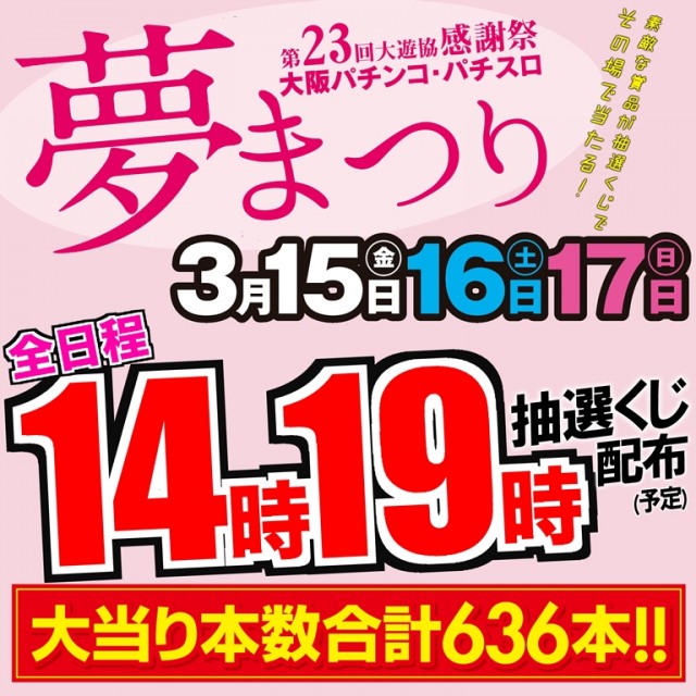 15日(金)マルハン岸和田★大阪パチンコ・パチスロ夢まつり★