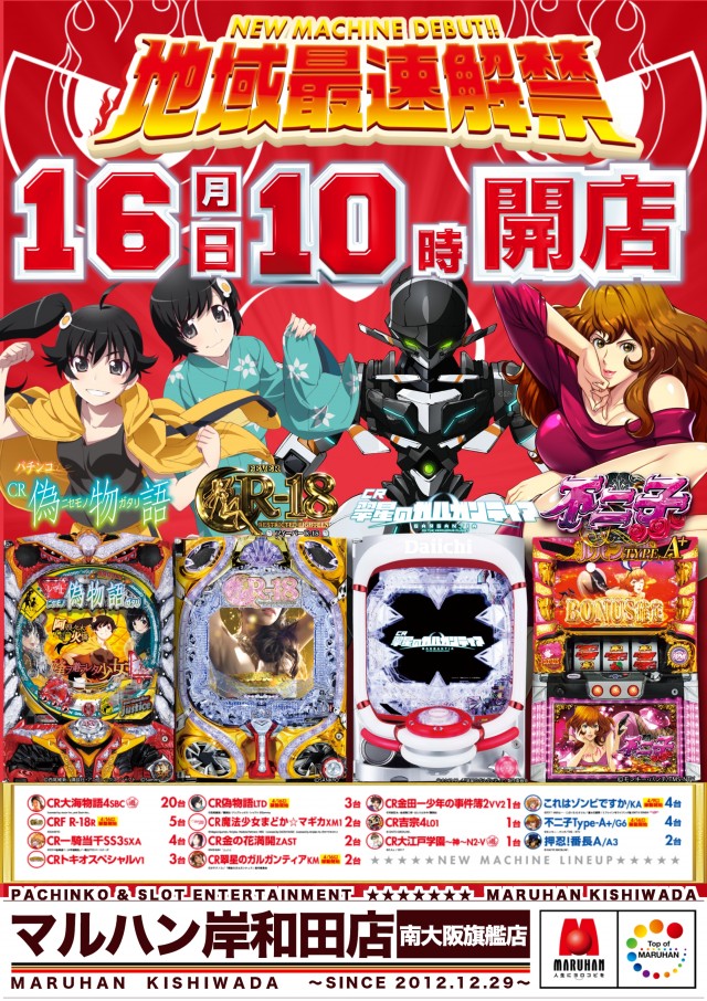 【マルハン岸和田店】3月17日(土) 10時開店!!