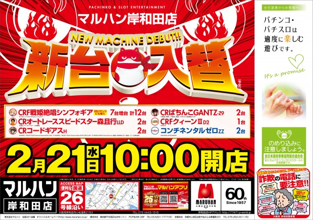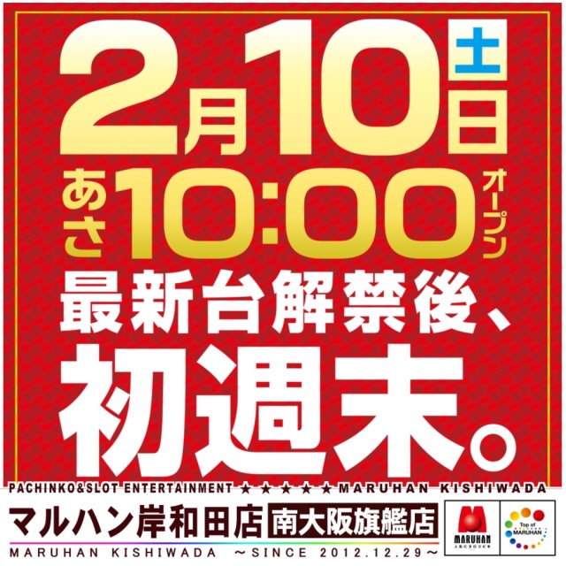 【マルハン岸和田店】2月1日(木) 朝10時開店!