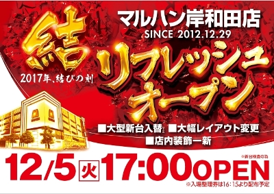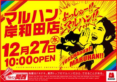 【マルハン岸和田店】11月17日(日)10時オープン!!