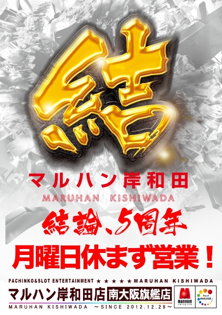 明日、月曜日休まず営業!!【マルハン岸和田店】