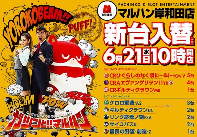 明日、6月17日 マルハン岸和田店 朝10時開店