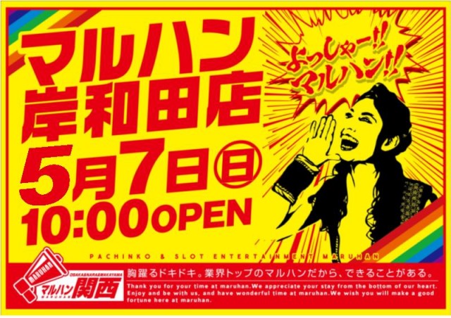明日、5月17日(水) マルハン岸和田店 朝10時開店!