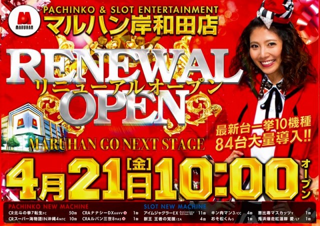 【マルハン岸和田店】4月22日(土) あさ10:00開店!!