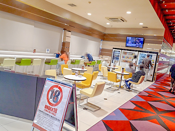 レストスペースはとても明るく開放的。大型テレビが用意されており、取材時はスポーツ観戦を楽しむプレイヤーも見られた。