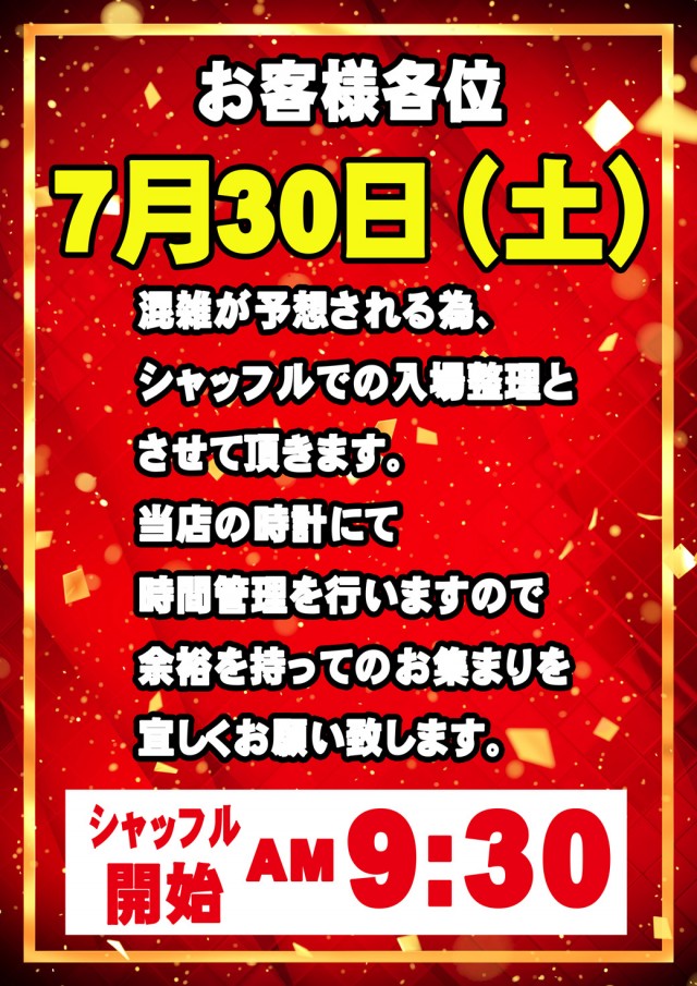 9時30分より当日整理券を銀座通り商店街側入り口で配布 |
