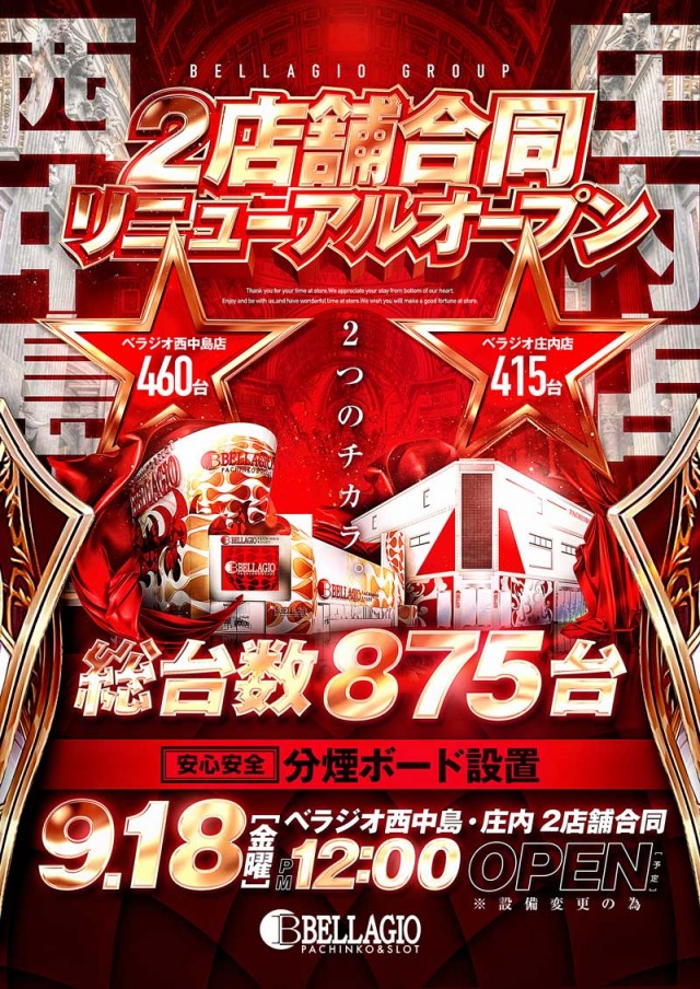 【BELLAGIO】庄内×西中島リニューアルオープン!!