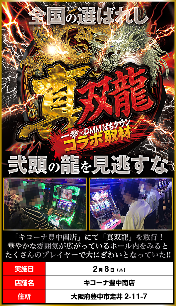 遊技面と環境面がどちらも充実している「キコーナ豊中南店」において、素敵なシーンをいくつもみられた「真双龍」となった。