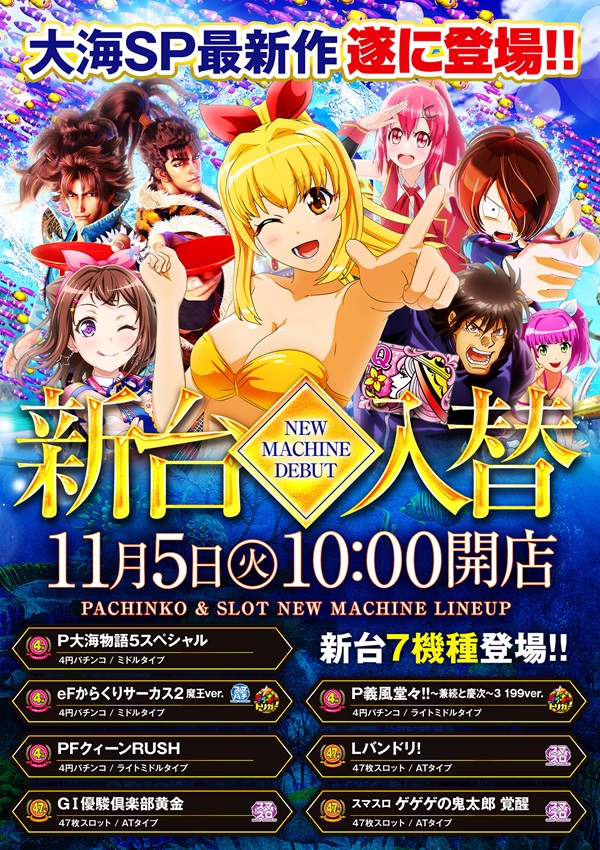 CHAMPION豊中店 11月5日 新台入替 10時開店!
