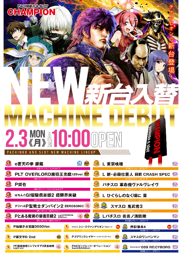 2月3日(月)新台入替!!!是非ご来店下さいませ!