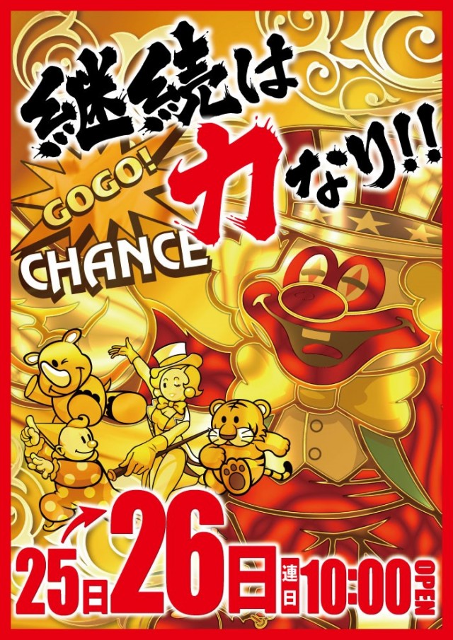 9時25分締切・9時30分からシャッフル開始です。 例外の場合は店内及びHPにてお知らせいたします。 |