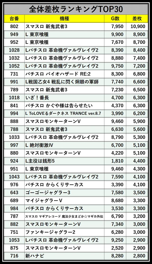その結果の中から、ぱちタウンが注目すべきポイントを厳選してユーザーにお届け!プレイヤーが楽しんだ一日を下記データにて振り返ってみて欲しい。