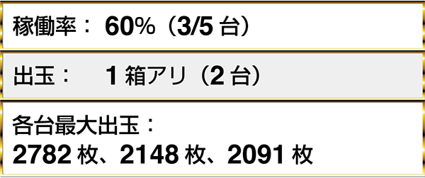 ・『ハナビ』では5名中2名が持ち玉遊技。最大獲得枚数3000枚超も確認