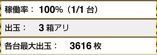 ボーナスタイプでは『ハナビ』において、最大獲得枚数3000枚超を確認している。