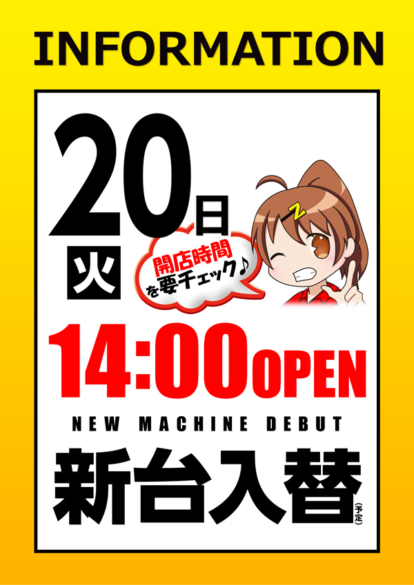 明日6日🌈新台入替🌈14時開店(予定)🎵