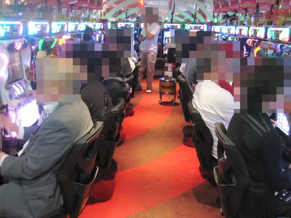 15時頃の20円パチスロでは、「バジリスク~甲賀忍法帖~絆」や新台の「パチスロ北斗の拳 修羅の国篇」が大盛況。機種のポテンシャルを最大限まで引き出しているといったプレイヤーの姿が目立っており、ひときわにぎやかな光景が広がっていた。