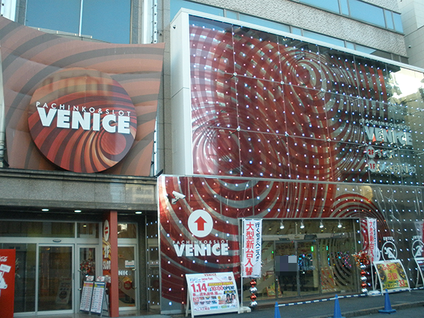 盛り上がりが大きい遊技面や過ごしやすい環境面など、数多くの魅力が輝いている「ベニス江坂店」。たくさんのプレイヤーの笑顔が印象的であった。