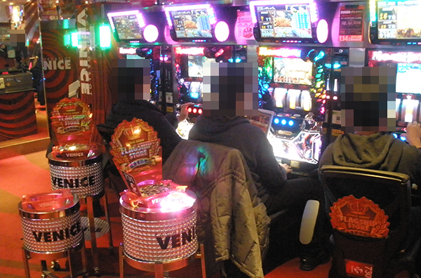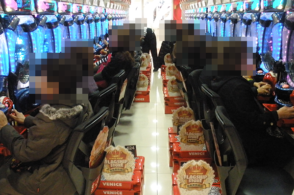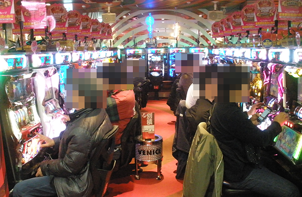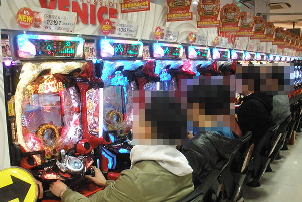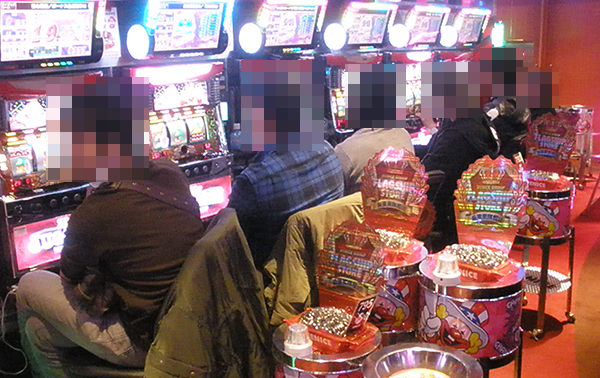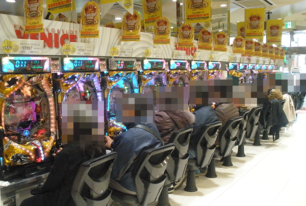 パチンコの低貸し玉コーナーにも、たくさんのプレイヤーが集合。